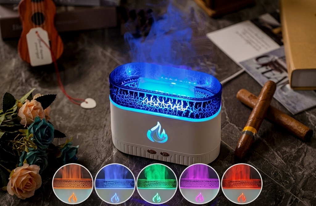 Unlike traditional heaters (winter-only) or fans (summer-only), the Flame Aromatherapy Machine is a four-season product. In winter, it adds moisture to dry, heated air; in summer, it provides a cooling visual and therapeutic scent in air-conditioned rooms.