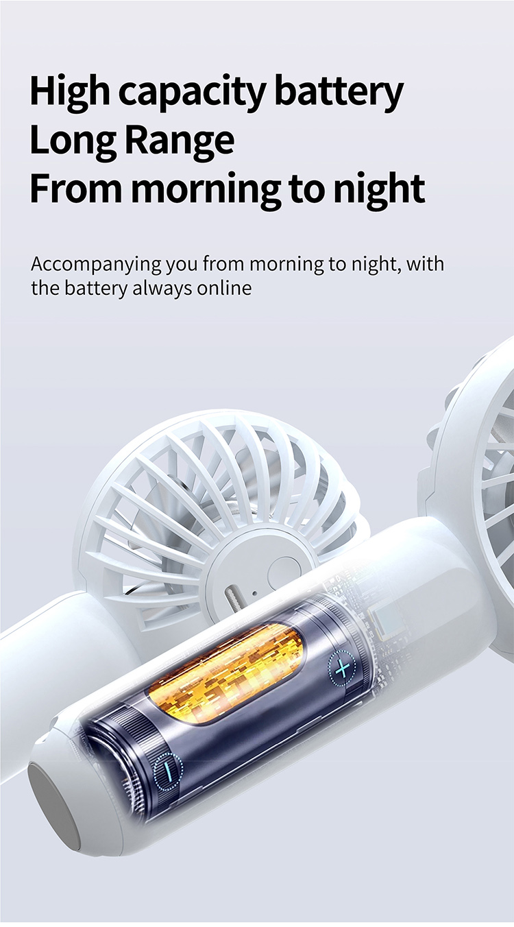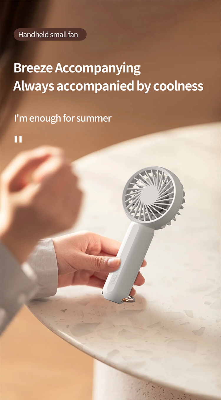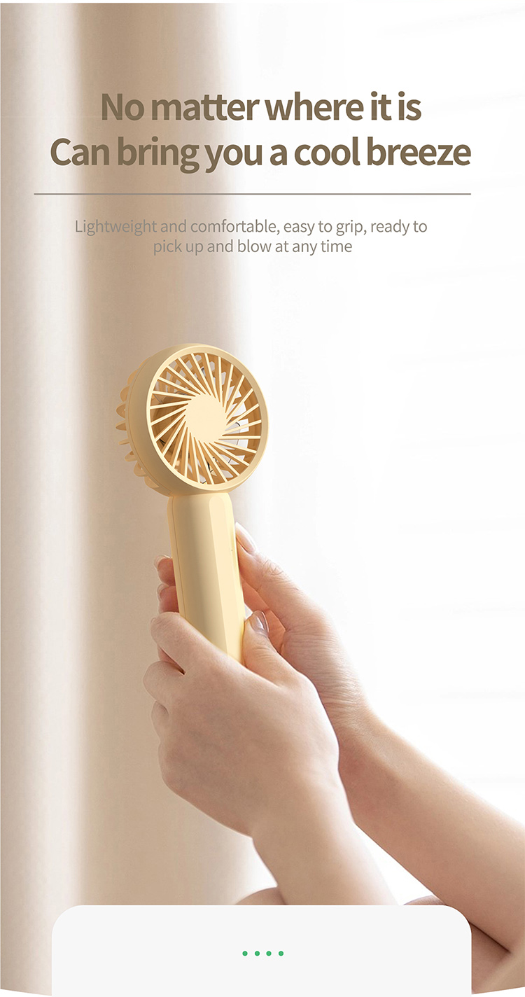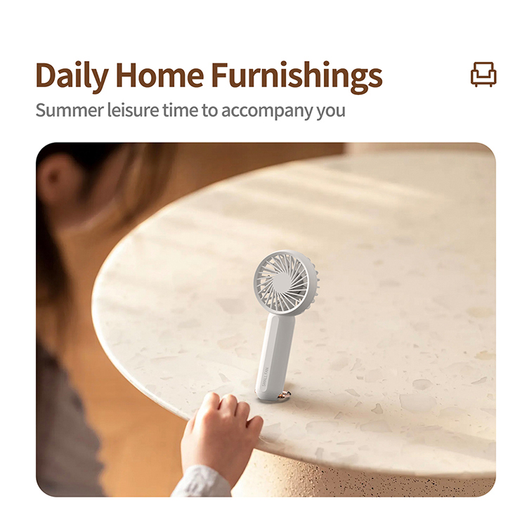 Powered by a 1200mAh rechargeable battery, it delivers steady, gentle airflow that’s just right for daily use, with a sleek, minimalist design that complements any style. Choose from 3 soft, versatile color SKUs: White, Beige, and Navy, each with a smooth, comfortable grip for all-day use.