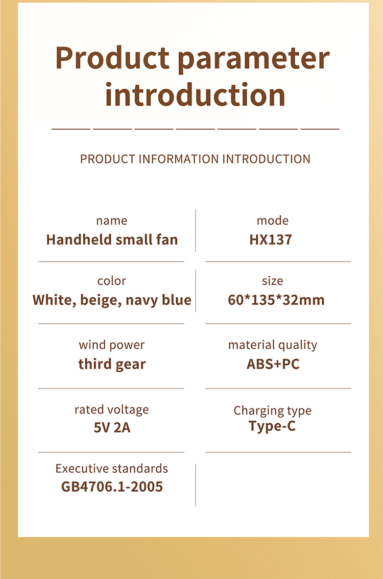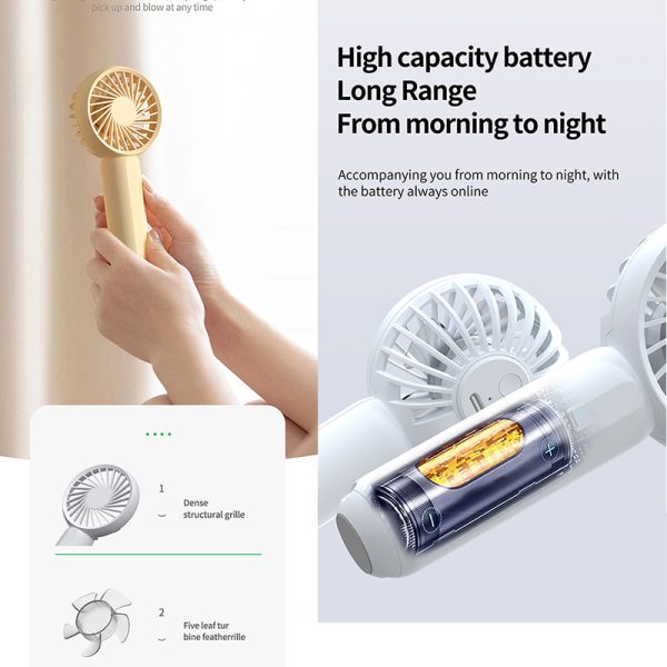 137 Handheld Cooling Fan “Breeze Accompanying” Handheld Mini Fan, 1200mAh Battery Personal Cooler, White/Beige/Navy for Daily Use