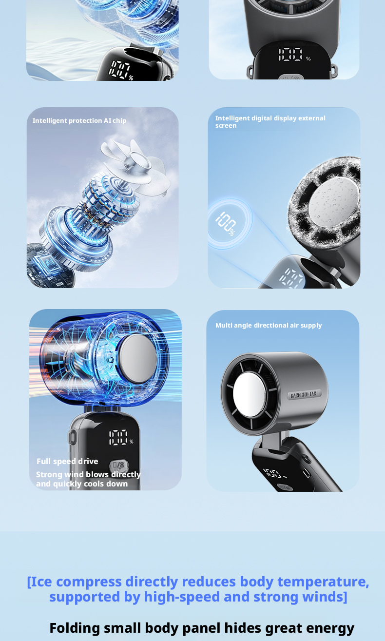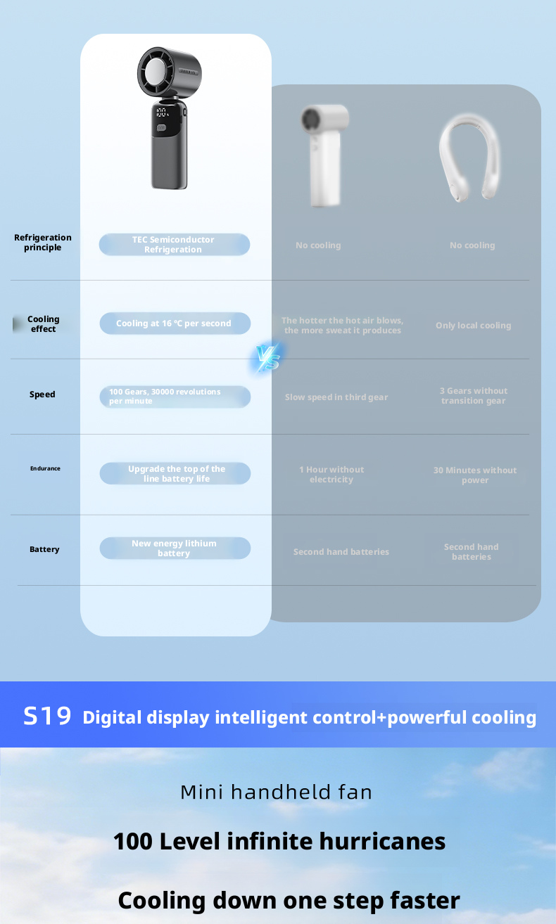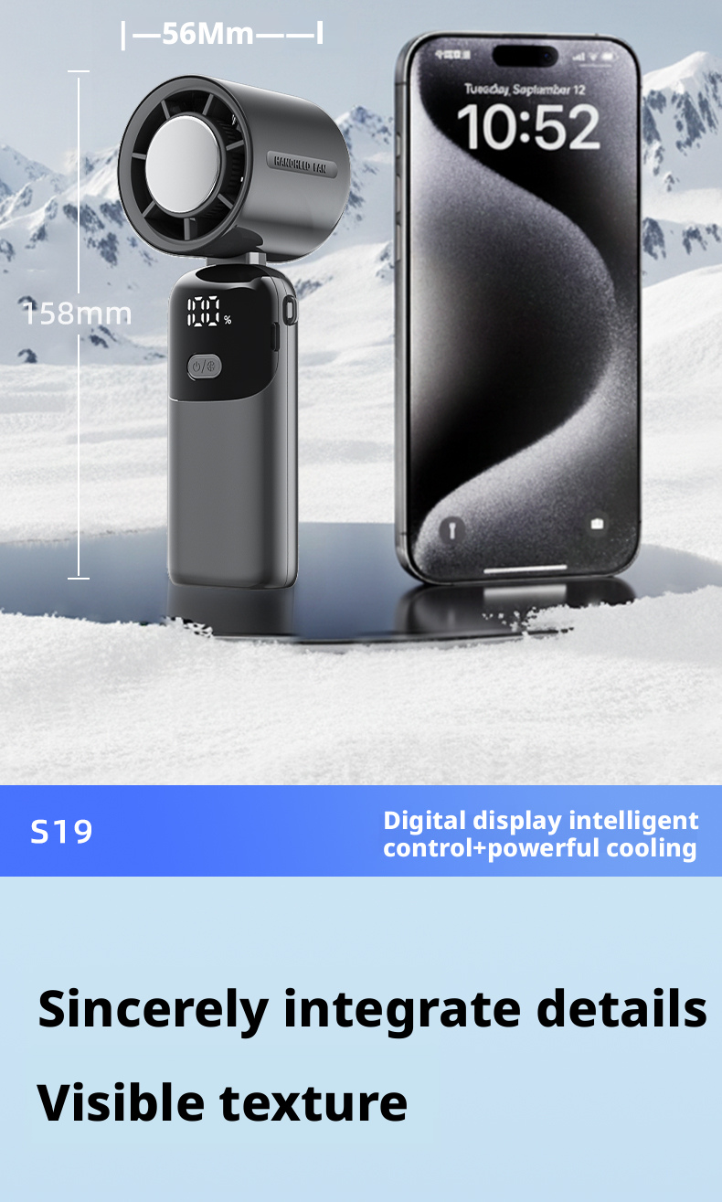 Custom S19 Foldable Turbo Handheld Fan ODM Manufacturer, Private Label 3600mAh Portable Cooler for Global Brands