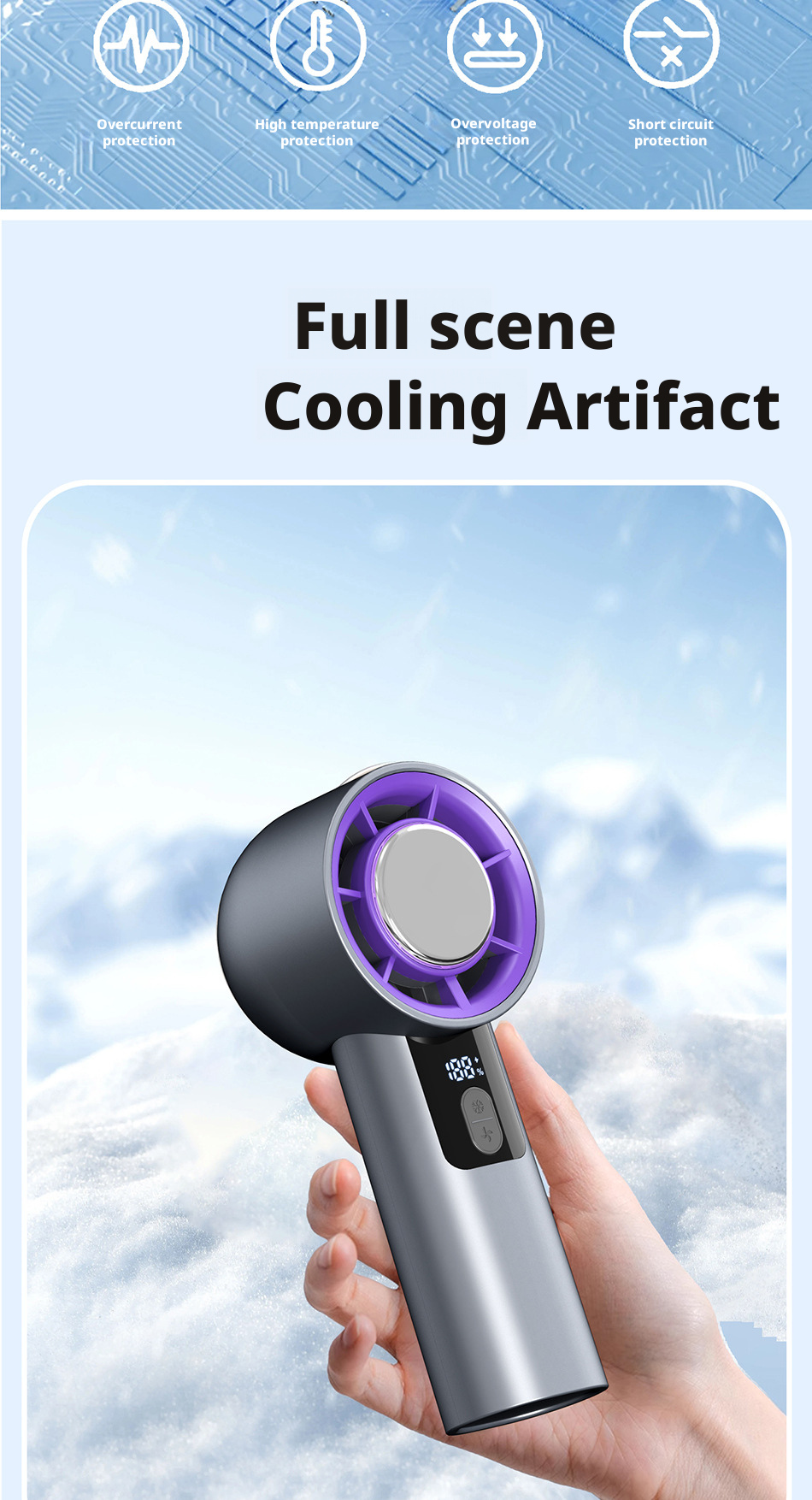 Equipped with advanced semiconductor cooling technology and a massive 3000mAh 21700 high-capacity battery, this fan delivers powerful, icy cold air to keep you fresh and sweat-free, even in hot weather. The built-in digital display provides real-time power and speed monitoring, ensuring intuitive and convenient operation for all users.