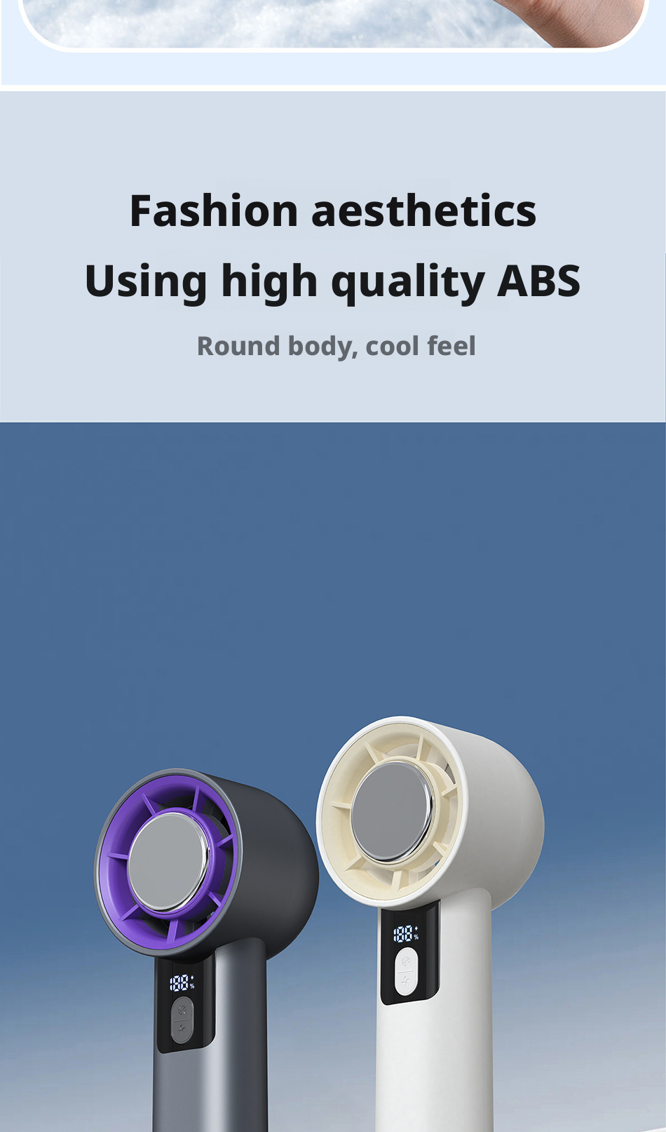 Introducing the HX-F130B, a premium and stylish handheld cooling fan directly from our factory. Built with high-quality ABS material, it features a sleek round body design that offers a comfortable and cool touch feeling.