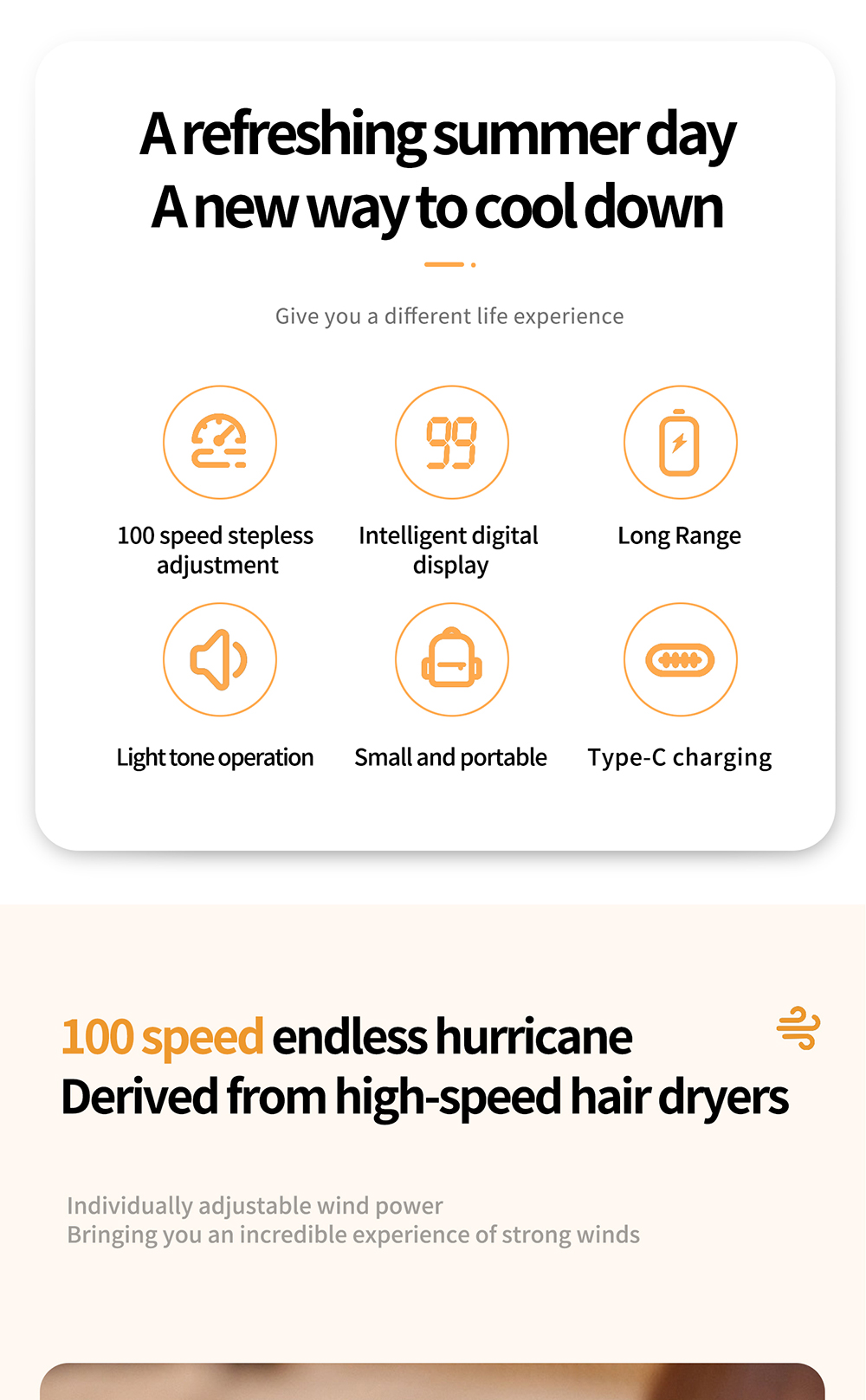 Featuring a sleek, ergonomic design (1506362mm) and a detachable base, this fan works perfectly as both a handheld cooler and a desktop stand fan, ideal for office, home, commuting, and travel. We offer 3 standard color SKUs for direct listing: White, Beige, and Navy, with custom color options available for OEM orders. Weighing only 188g, it is ultra-portable and comfortable to hold for extended use.