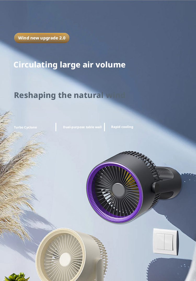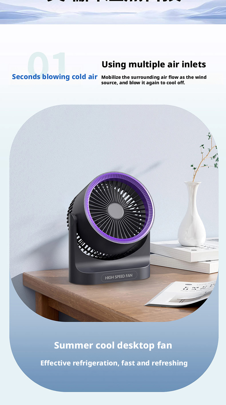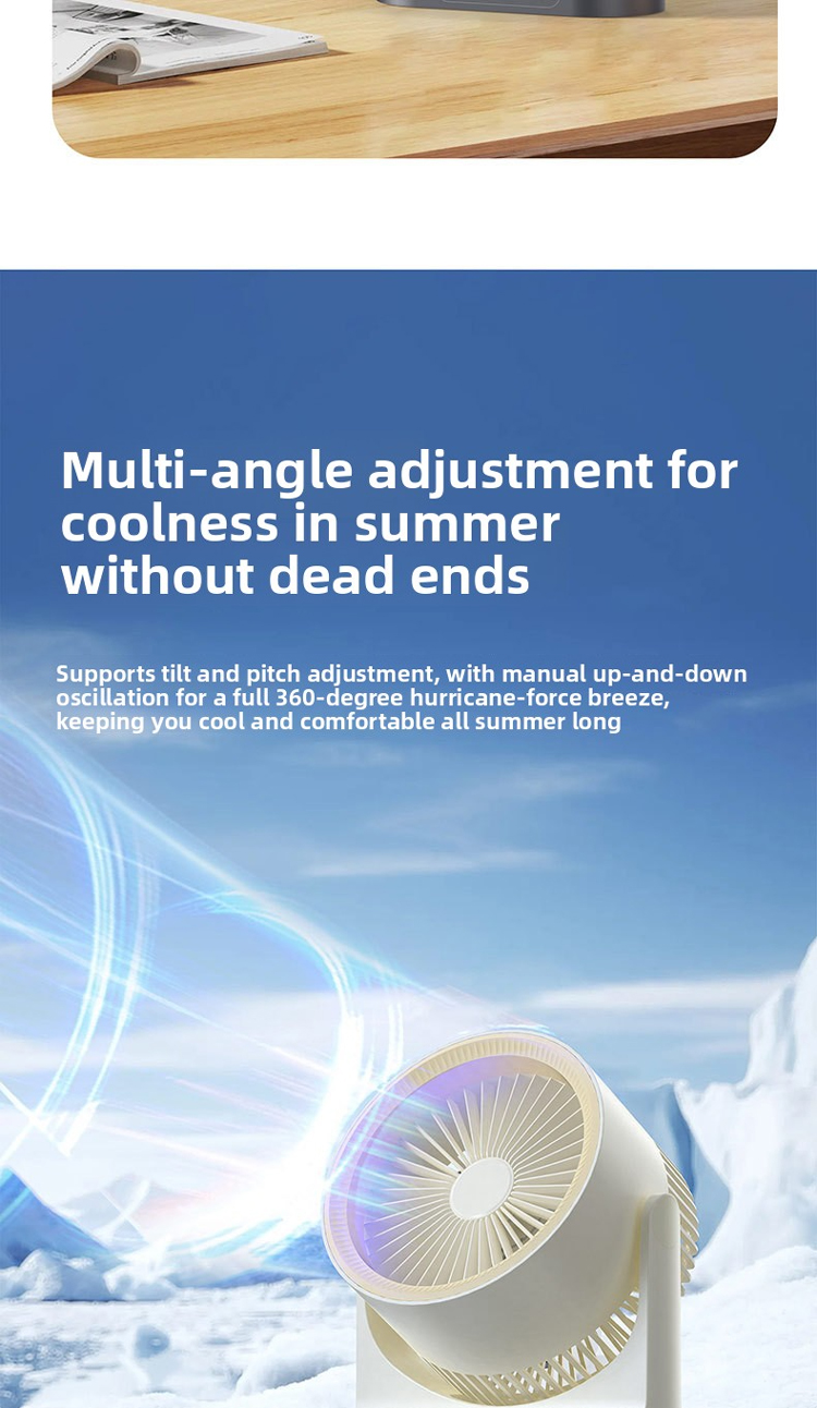 125 Wide-Angle Airflow Rechargeable Fan, 1200mAh Portable Desktop Cooler Manufacturer