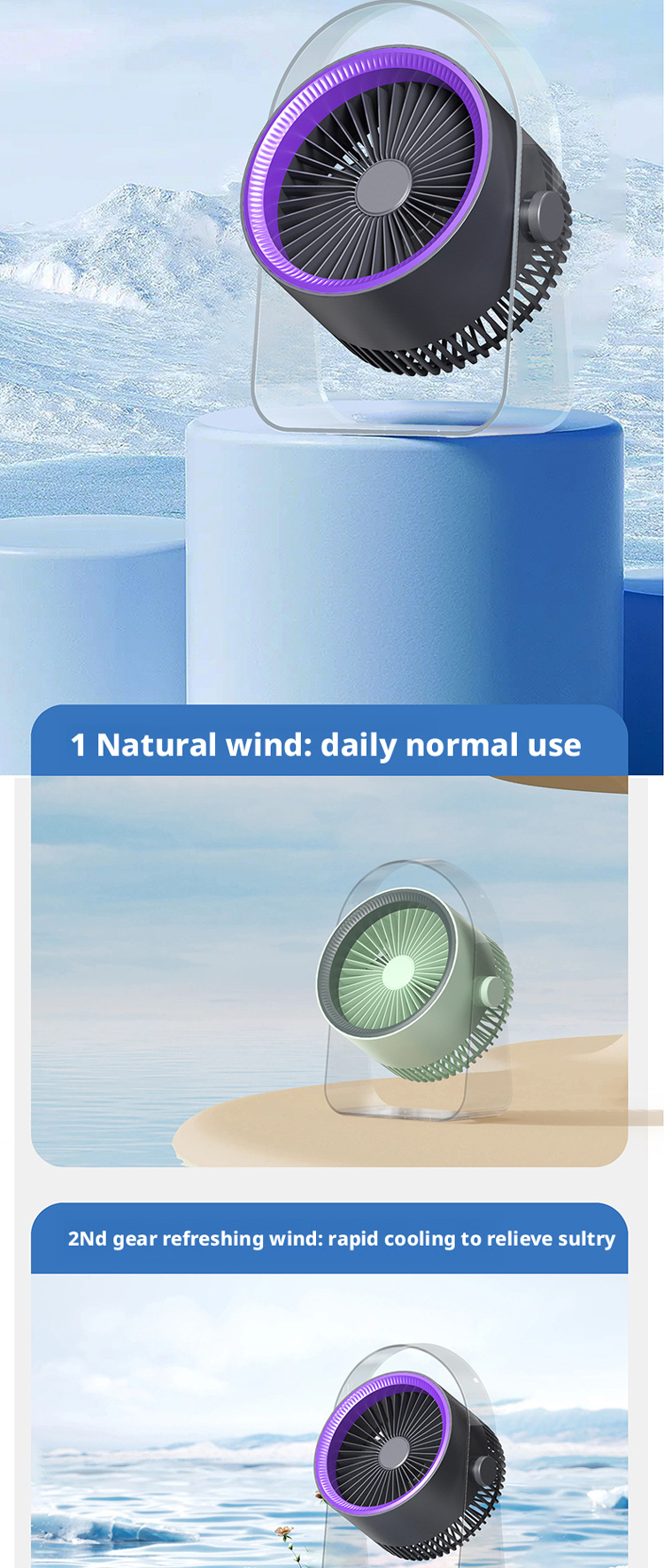 We are a professional manufacturer of the HX-F316A dual-use desktop & hanging air circulator fan, a high-performance multi-scene cooling solution equipped with 2000mAh 18650 dual battery, 561g durable design, 360° adjustable metal hanging stand, and 3 color options (off-white, gray-green, dark gray). Ideal for home, office, dorm, camping & daily use, it features quiet operation, strong airflow and USB fast charging. As a reliable B2B factory, we offer full OEM/ODM customization, CE/FCC/RoHS certification, stable mass production, competitive pricing and one-stop after-sales support to meet the needs of global buyers, distributors, retailers and cross-border e-commerce sellers.