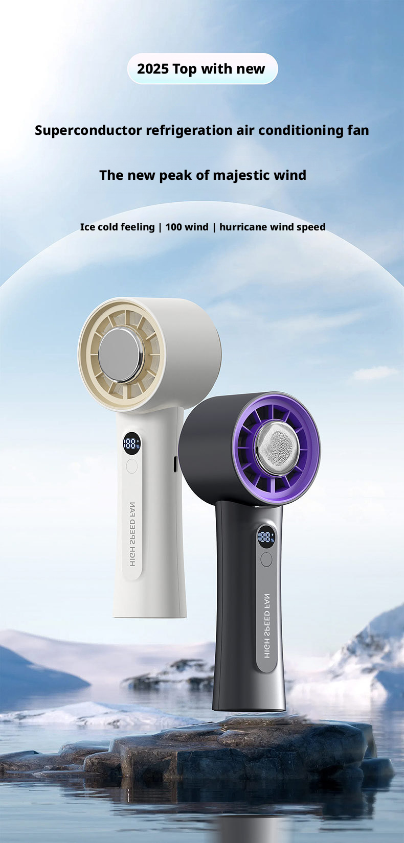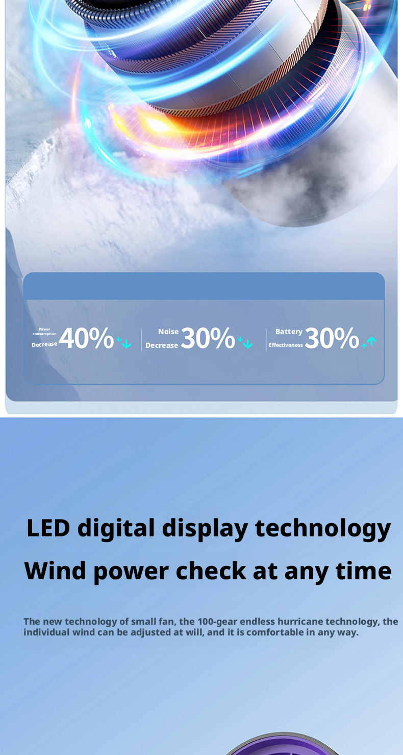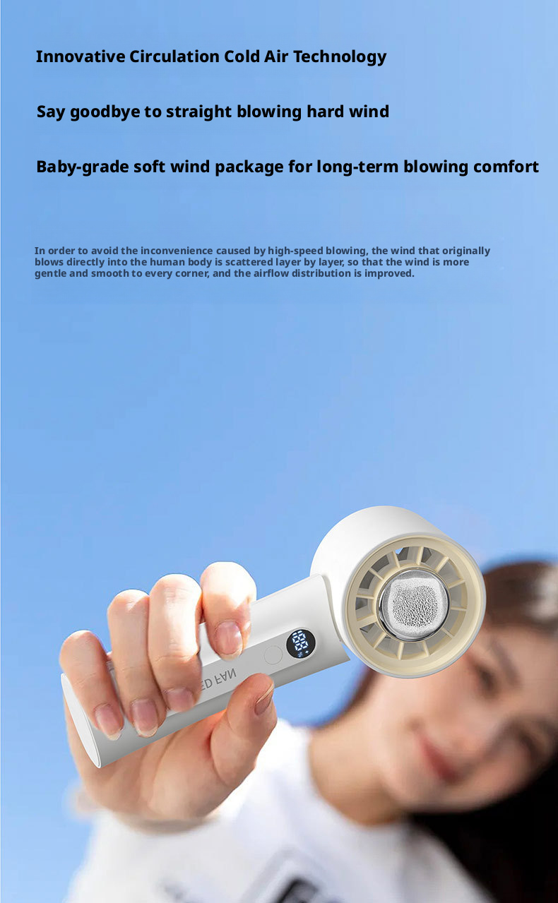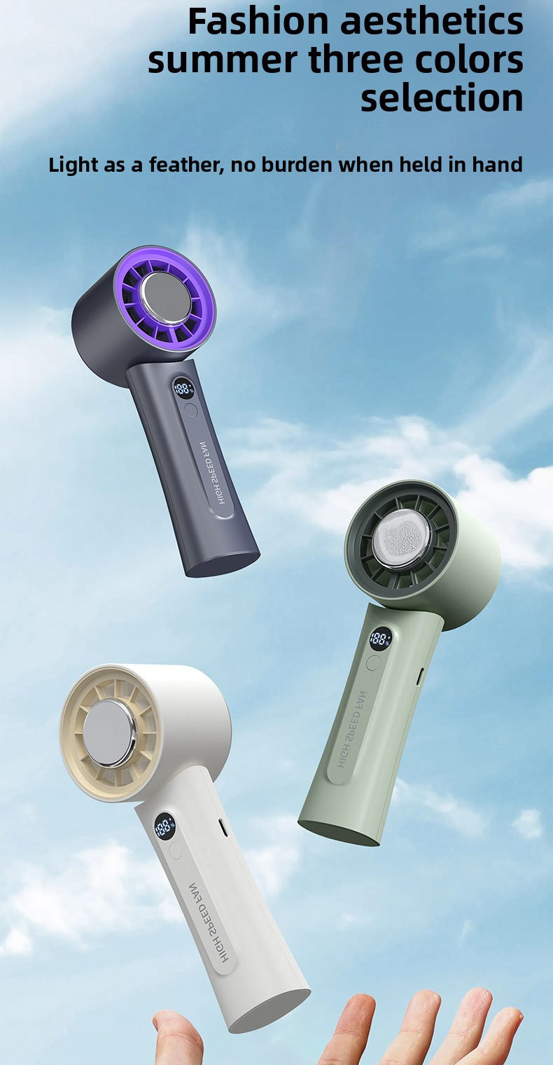 The HX-F326 represents a new peak of majestic wind power, engineered to deliver hurricane-level airflow with instant ice compress cold sensation. Powered by a 3000mAh 21700 high-capacity rechargeable battery, this fan provides ultra-long-lasting runtime, while its 100-level wind adjustment lets users precisely control cooling intensity for personalized comfort.