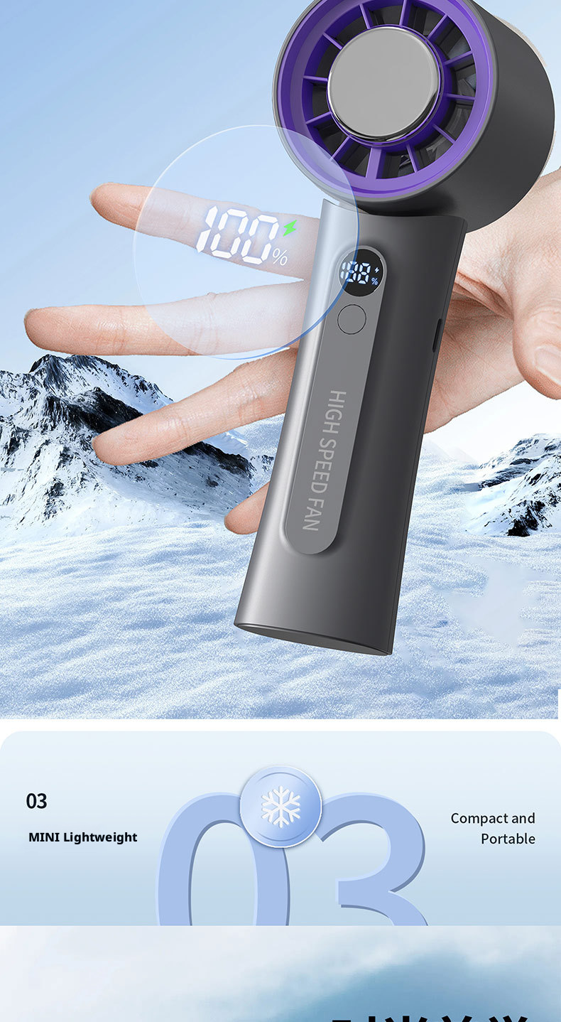 HX-F326 3000mAh 21700 Hurricane Speed Handheld Fan, 100-Level Adjustable Ice Compress Cooling Fan, OEM ODM Factory