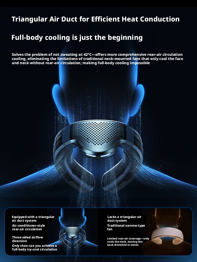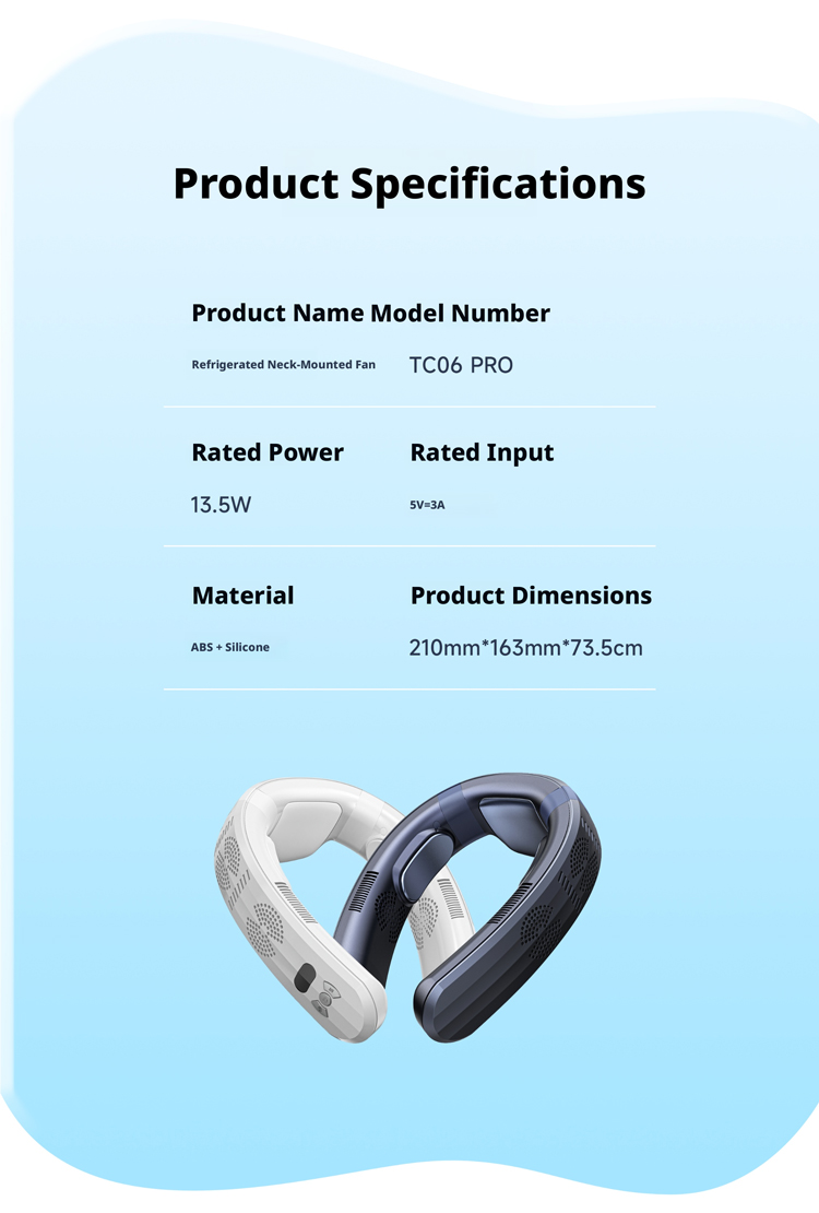 We are a professional manufacturer of the TC06 Pro upgraded large-area cold and warm neck hanging fan, an all-season wearable cooling solution equipped with a 7000mAh large-capacity polymer battery, 10W high power, and semiconductor refrigeration & heating dual function. As a reliable B2B factory, we serve all types of global business partners, including brand owners needing ODM/OEM customization, cross-border e-commerce sellers on Amazon/TikTok Shop/Temu requiring low MOQ and fast delivery, global importers and distributors seeking bulk supply and long-term cooperation, offline supermarkets and retail chains needing certified retail-grade products, gift companies and procurement teams for custom promotional gifts, and project clients for outdoor, commuting and daily life engineering procurement. We offer full customization services, complete CE/FCC/RoHS certification, stable mass production capacity, competitive pricing, and one-stop after-sales support to meet the diverse needs of all our clients.