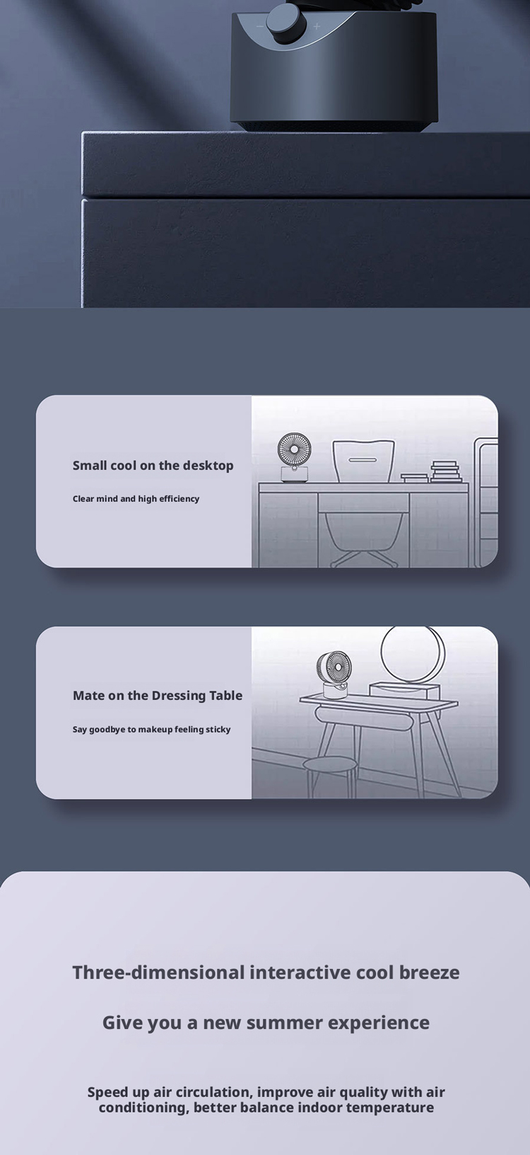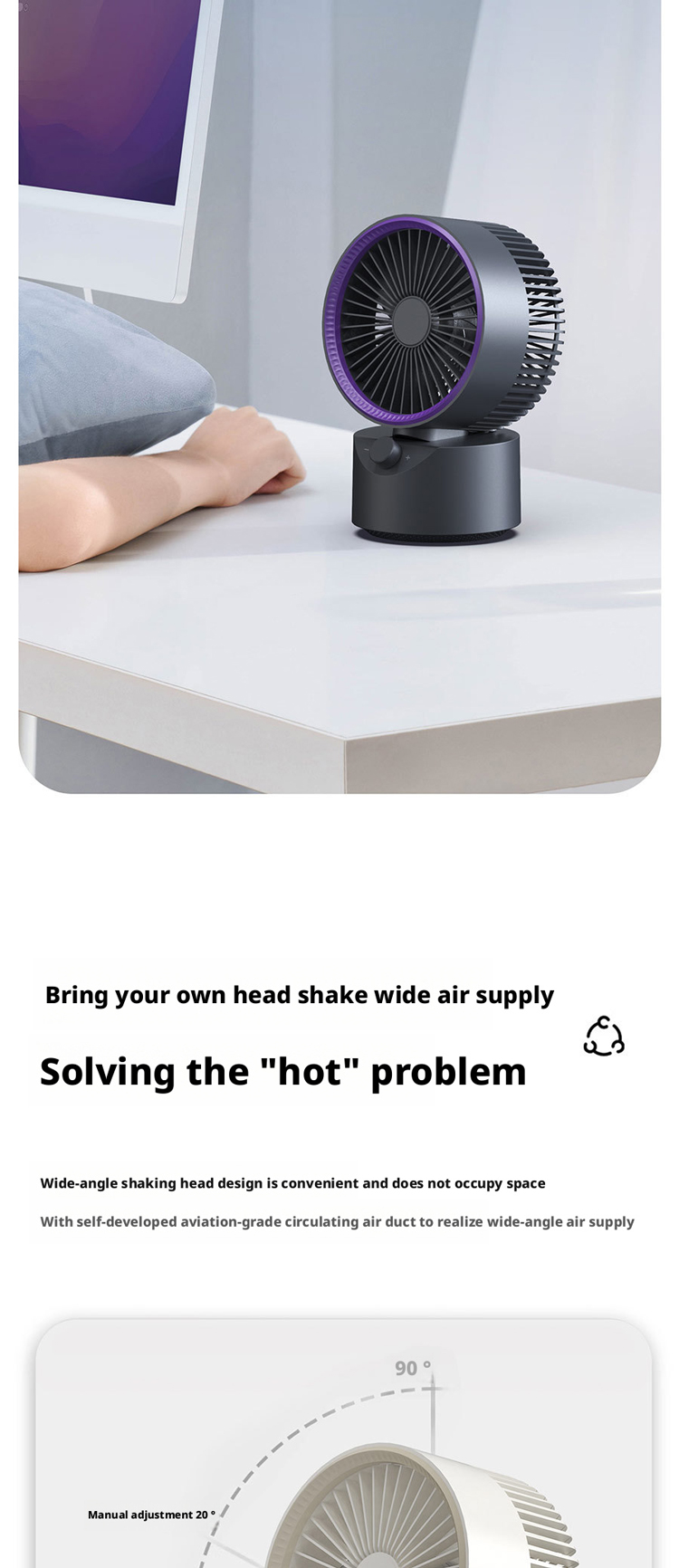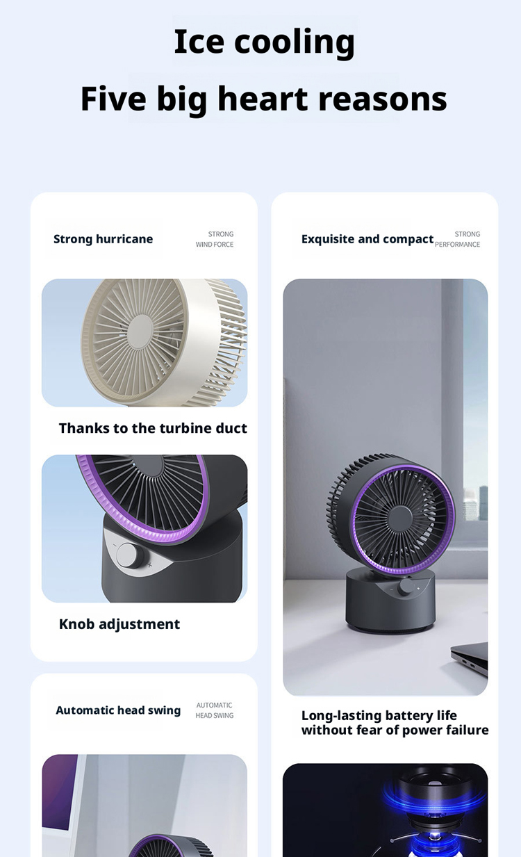 We are a professional manufacturer of the HX-F311 desktop air circulator fan, a compact and portable cooling solution equipped with 18650/2000mAh large-capacity battery, 287g lightweight design, 360° adjustable airflow, and soft ambient light accents, ideal for home, office, dorm and travel use. As a reliable B2B factory, we serve all types of global business partners, including brand owners needing ODM/OEM customization, cross-border e-commerce sellers on Amazon/TikTok Shop/Temu requiring low MOQ and fast delivery, global importers and distributors seeking bulk supply and long-term cooperation, offline supermarkets and retail chains needing certified retail-grade products, gift companies and procurement teams for custom promotional gifts, and project clients for home, office and daily life procurement. We offer full customization services, complete CE/FCC/RoHS certification, stable mass production capacity, competitive pricing, and one-stop after-sales support to meet the diverse needs of all our clients.