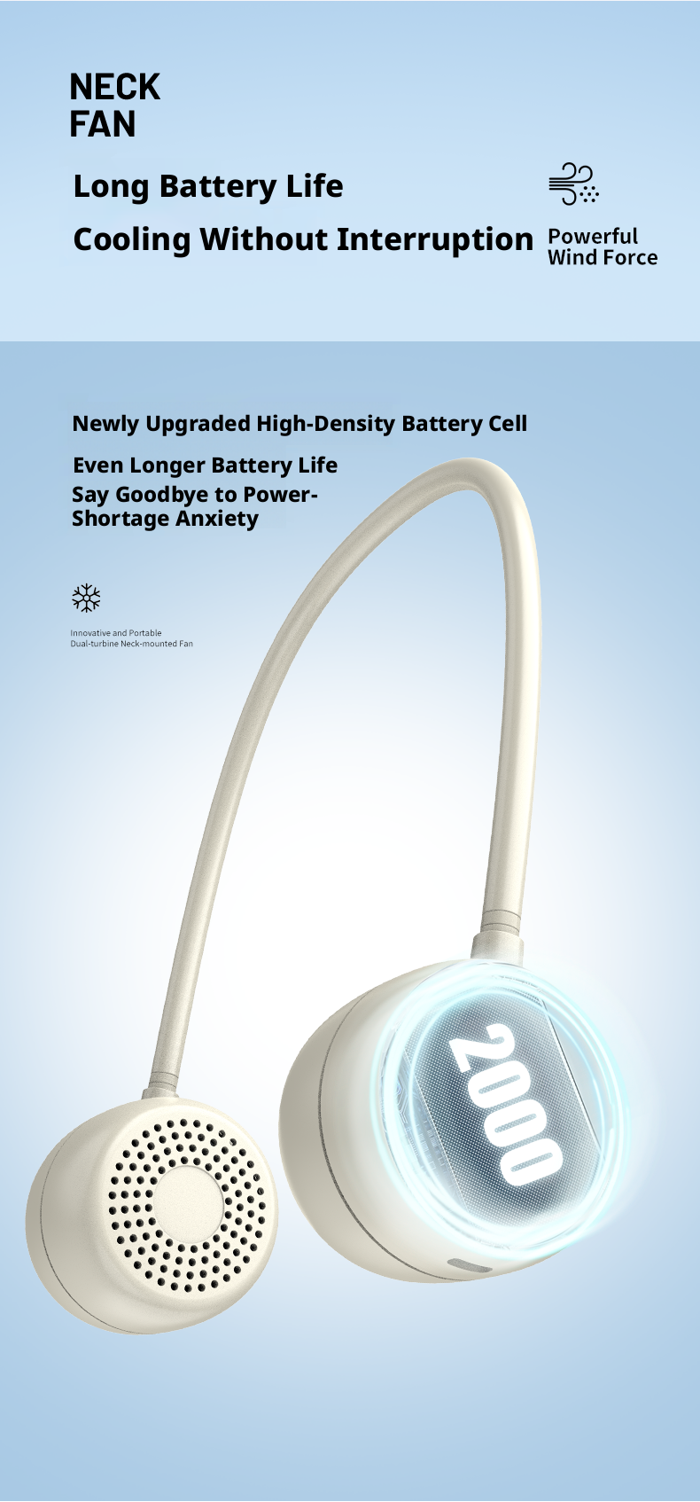 Professional J75 Flexible Neck Fan Factory, Custom 2000mAh Rechargeable Wearable Cooler Supplier for Brands, Sellers & Wholesalers