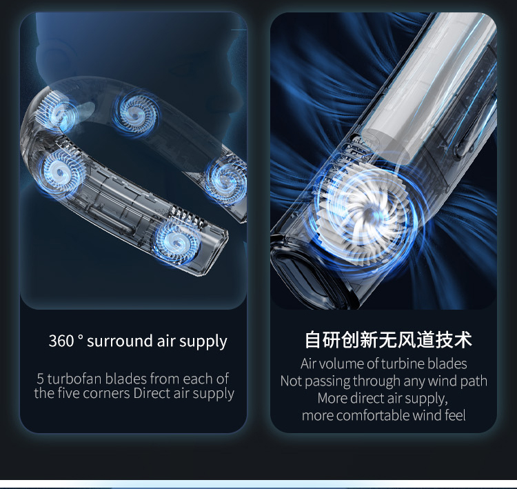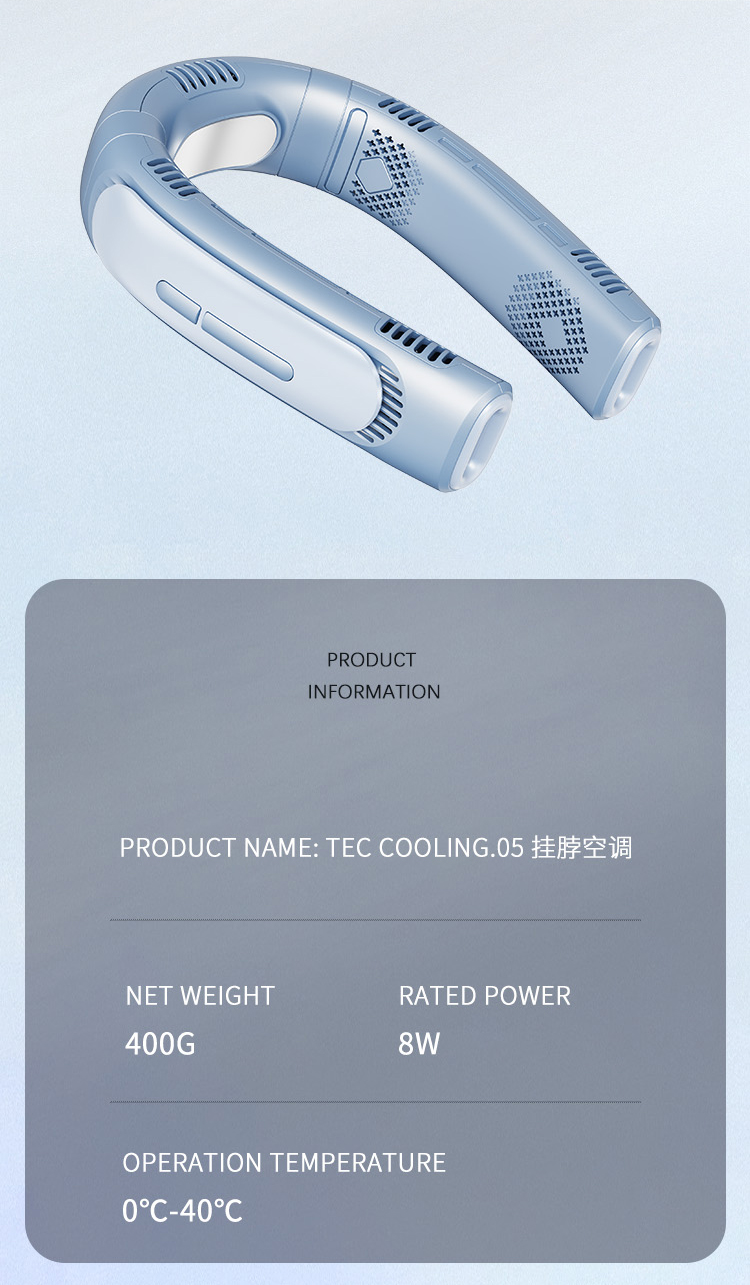 We are a professional manufacturer of the TC05 Bingqing 05 five-core ice-sensing neck hanging fan, a high-performance wearable cooling solution with 4000mAh large-capacity battery, 10W power, 5-core semiconductor refrigeration that lowers temperature to 10-12°C, 1.5-7 hours of runtime, and Type-C 2A fast charging, ideal for summer commuting, outdoor activities and daily use. As a reliable B2B factory, we serve all types of global business partners, including brand owners needing ODM/OEM customization, cross-border e-commerce sellers on Amazon/TikTok Shop/Temu requiring low MOQ and fast delivery, global importers and distributors seeking bulk supply and long-term cooperation, offline supermarkets and retail chains needing certified retail-grade products, gift companies and procurement teams for custom promotional gifts, and project clients for outdoor, commuting and daily life procurement. We offer full customization services, complete CE/FCC/RoHS certification, stable mass production capacity, competitive pricing, and one-stop after-sales support to meet the diverse needs of all our clients.