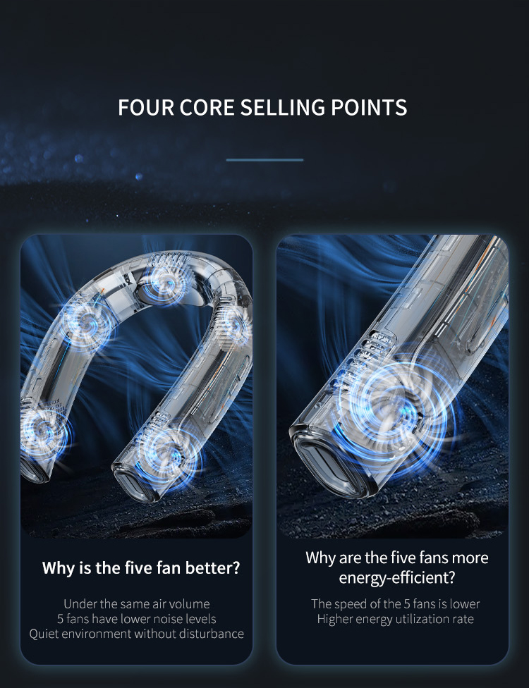 Professional TC05 Five-Core Cooling Neck Fan Factory, Custom 4000mAh Semiconductor Neck Cooler Supplier for Brands, Sellers & Wholesalers