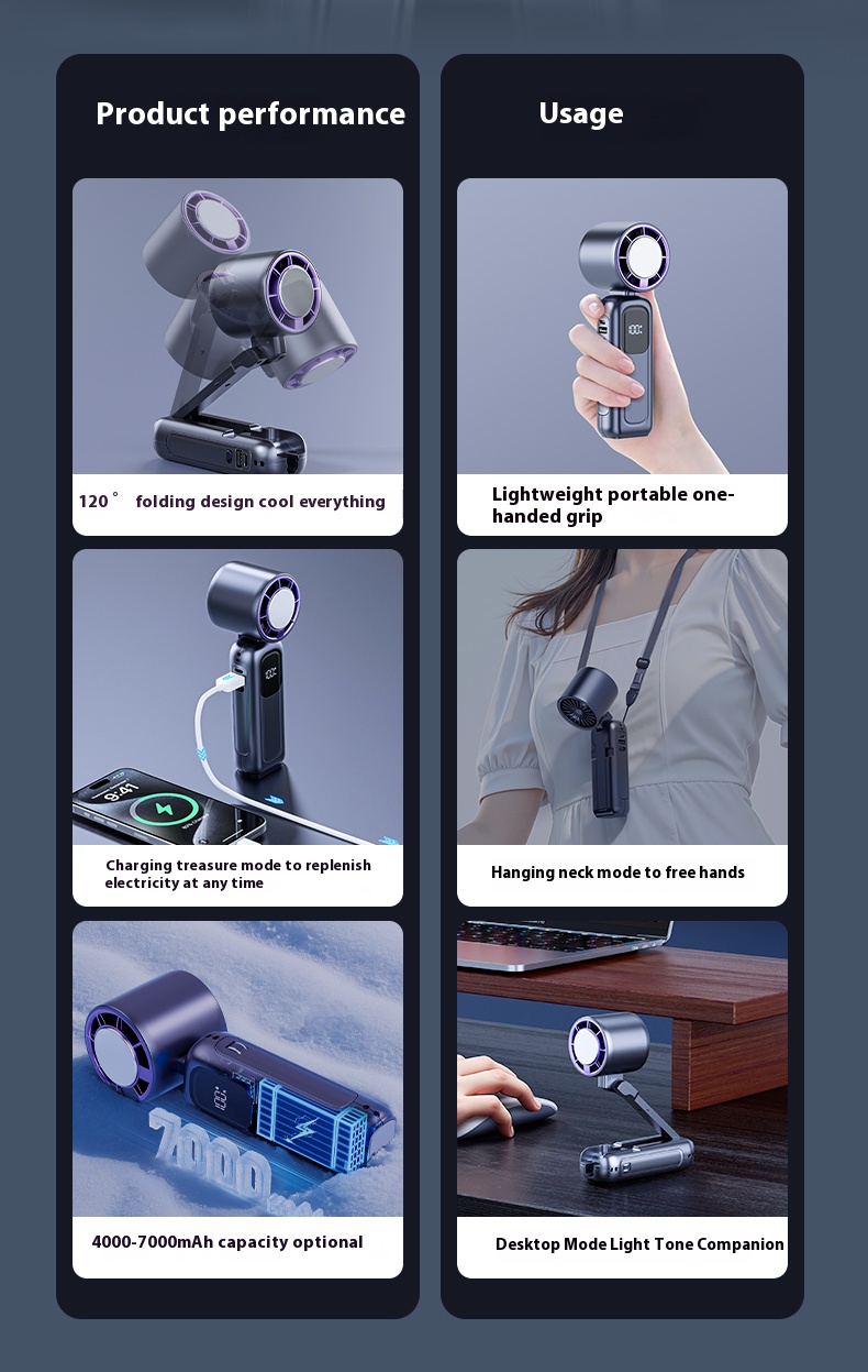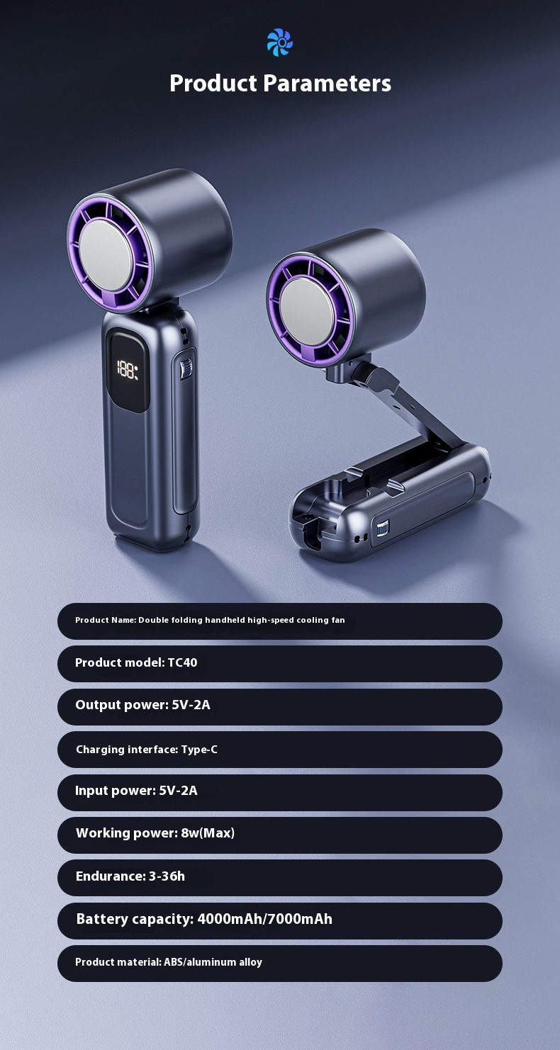 TC40 High-End Foldable Cooling Handheld Fan, 4000mAh Power Bank Portable Cooler for Outdoor & Office, 4 Color Options