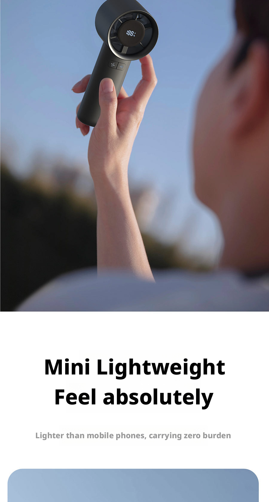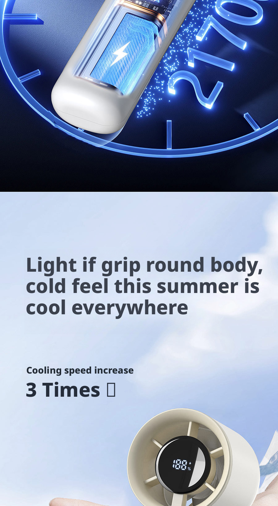Powered by a 2000mAh 18650 high-capacity rechargeable battery, this fan ensures long-lasting runtime for all-day use. With a compact size (5854147mm) and ultra-lightweight design (only 130g net weight), it is highly portable, perfect for commuting, office, travel, and outdoor activities. Available in three stylish color options—Beige, Black, Dark Gray—it combines modern aesthetics with reliable performance.