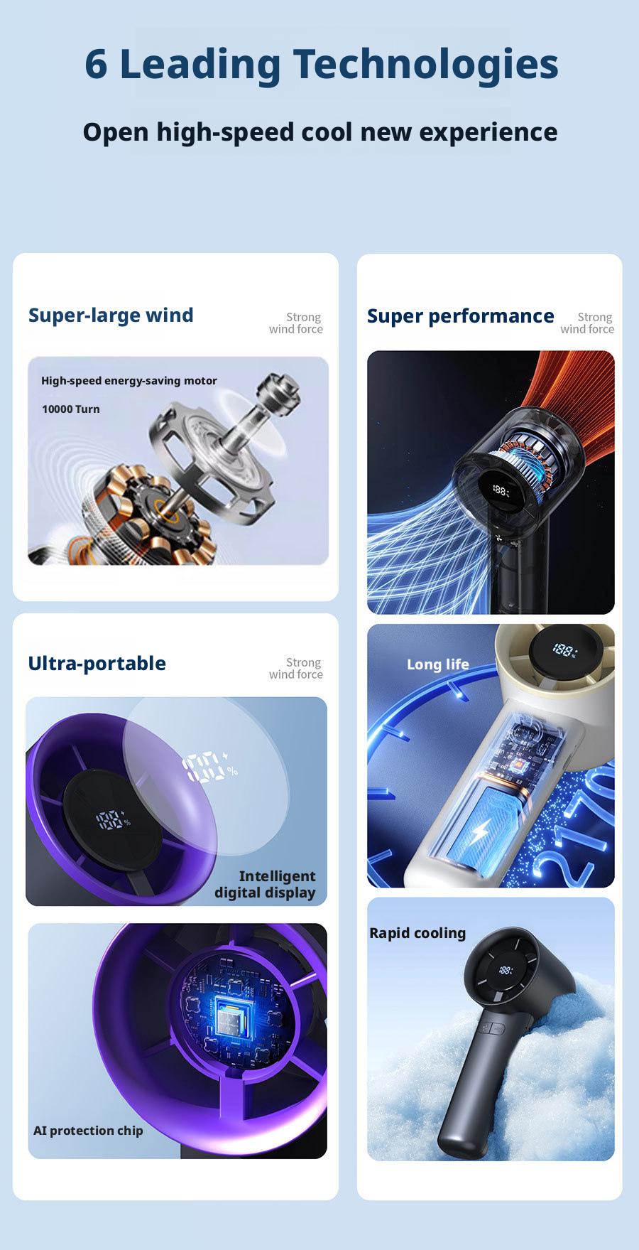 The HX-F360 is a factory-direct intelligent handheld fan engineered to deliver personalized cooling comfort. Featuring 100-gear wind speed control and an intelligent digital display, it lets users precisely adjust airflow and monitor battery status in real time, with turbocharging technology that blows out powerful, cool breeze instantly.