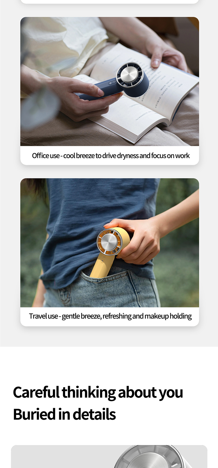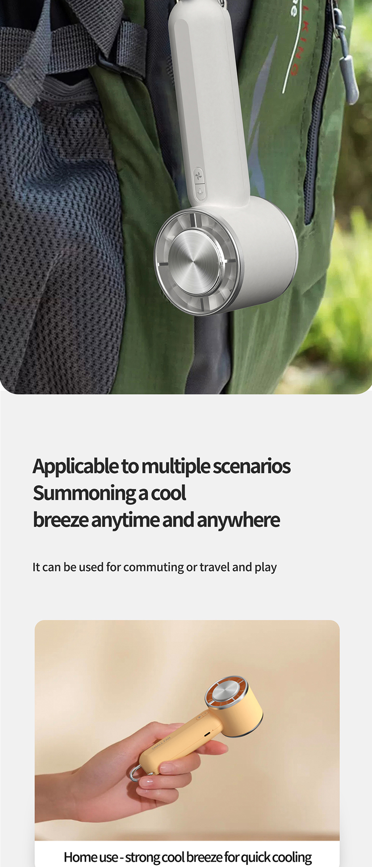 Powered by a 2000mAh high-capacity rechargeable battery, this fan ensures long-lasting runtime to keep you cool whenever you need it. Its minimalist and elegant design comes in three versatile summer color SKUs: White, Beige, and Navy, each offering a smooth, comfortable grip that complements any personal style.