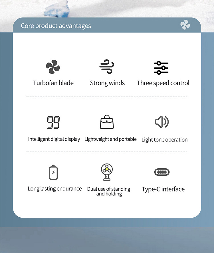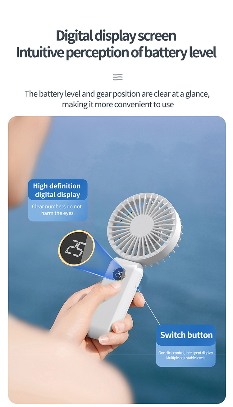 HX-F303 Turbo Handheld Fan with Digital Display, 3000mAh Long Battery Life Portable Cooling Fan, OEM ODM Factory