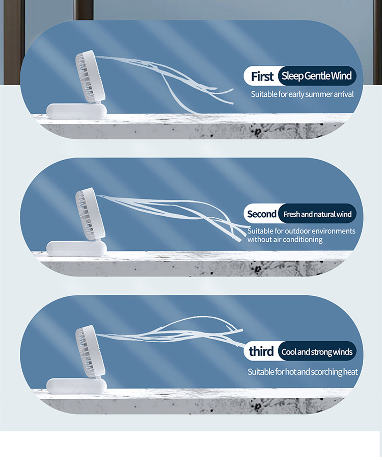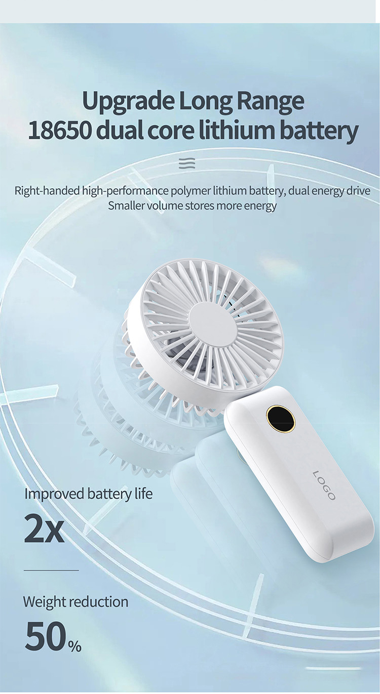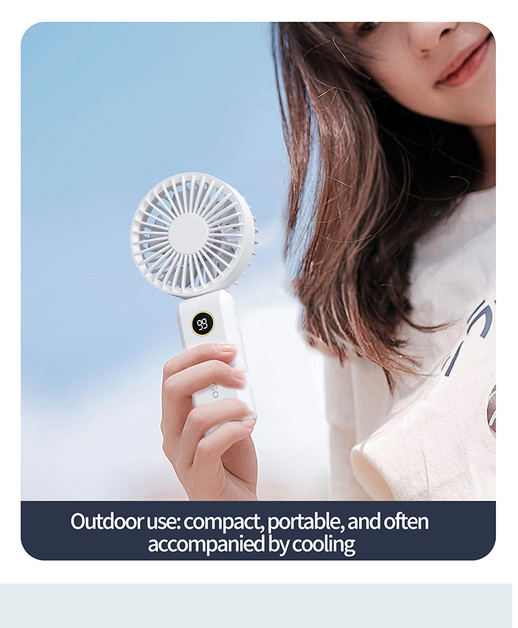 Equipped with a 1200mAh high-quality rechargeable battery, this fan ensures reliable runtime to beat the heat. Its modern and ergonomic design comes in three fresh summer color options: White, Beige, and Navy. Each color variant features a smooth touch finish and a clear digital display, making it both a practical cooling tool and a stylish accessory for every occasion.